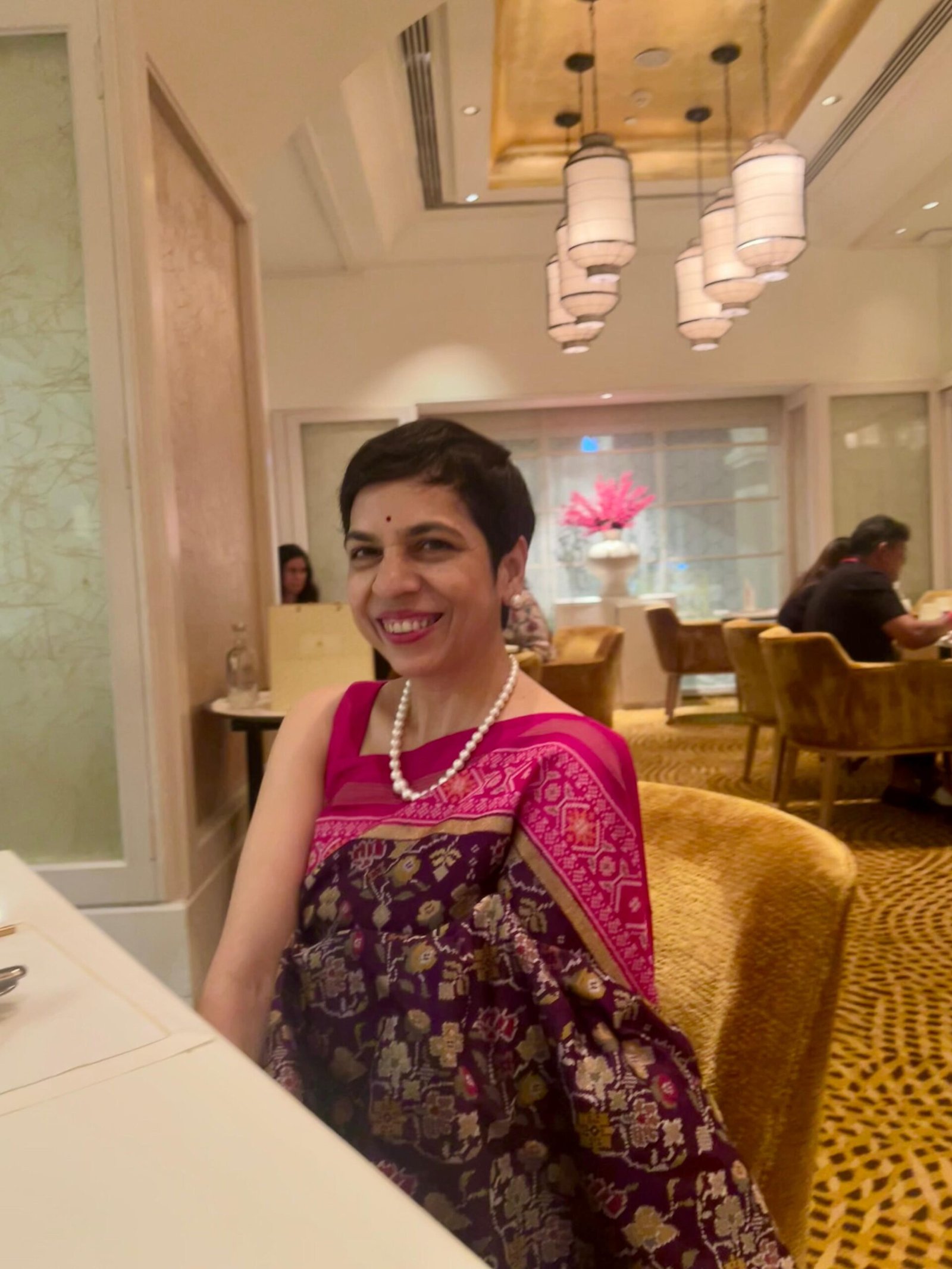 The vivid pink border and pallu shimmer with intricate designs inspired by the famed Patan Patola craftsmanship, creating a harmonious blend of heritage and modern elegance. Lightweight, graceful, and versatile — Rajeshwari drapes like a dream, perfect for festive gatherings, cultural occasions, or elegant evenings.