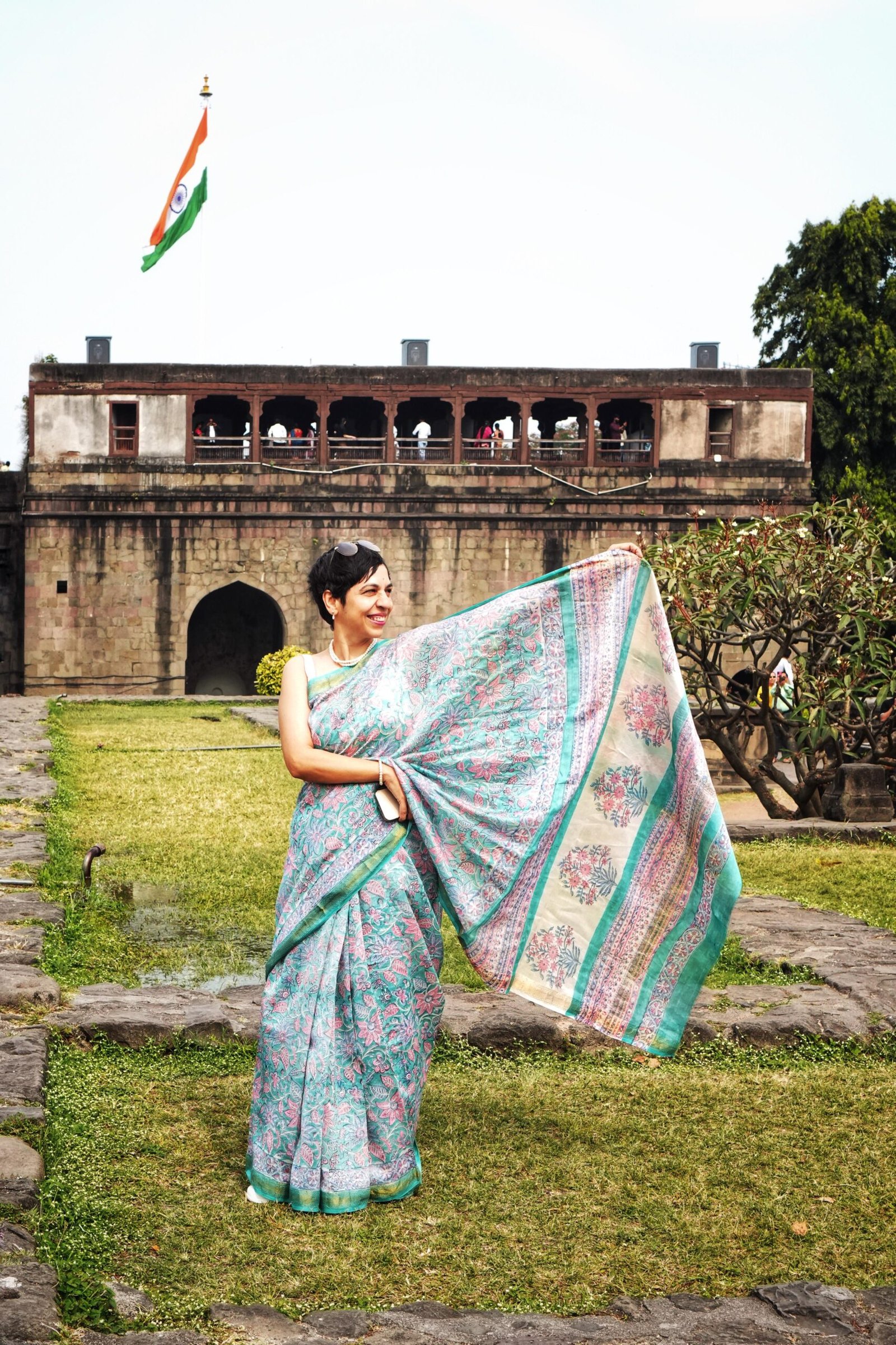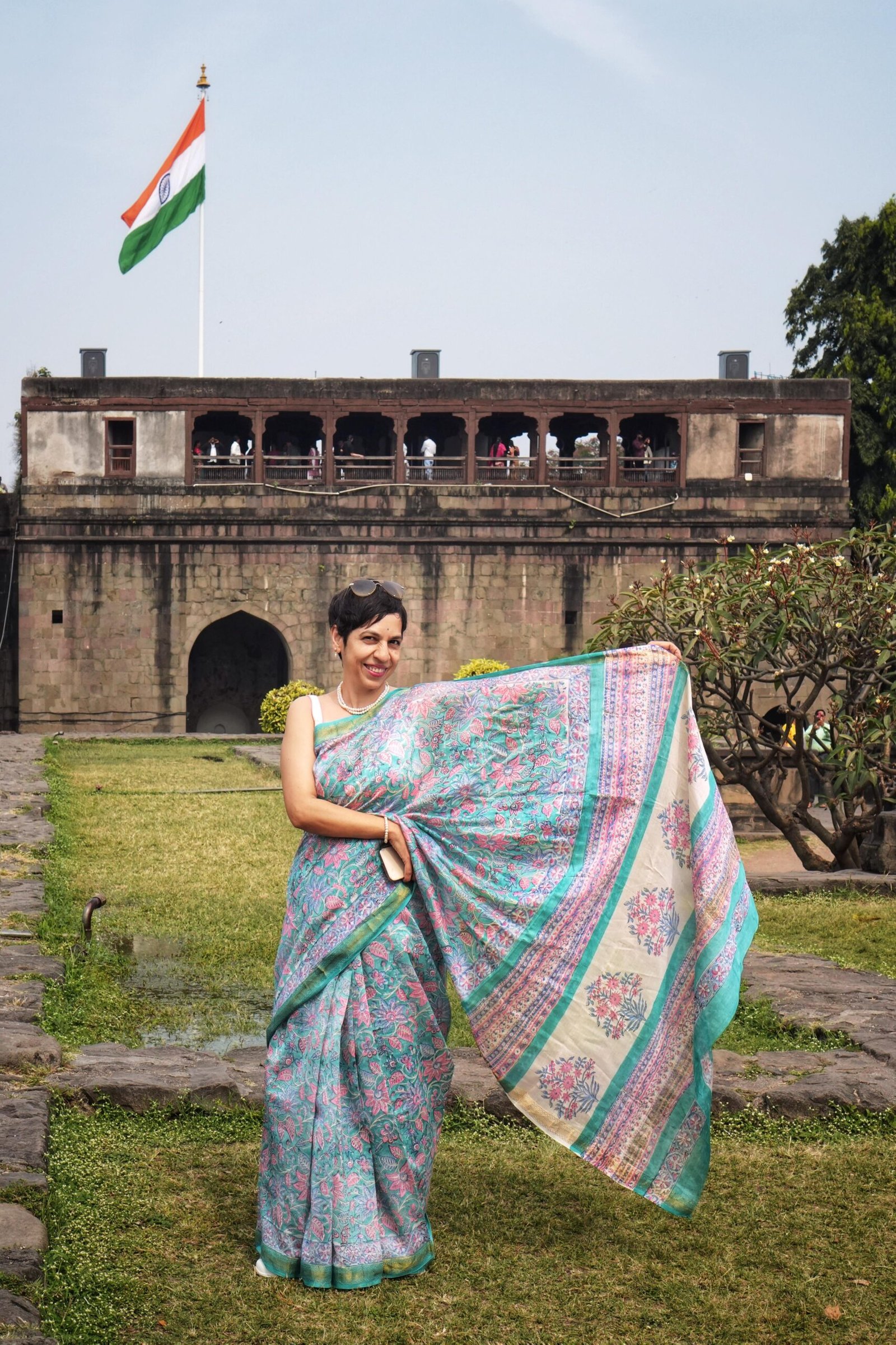 To keep her beauty alive for years, dry clean gently, store wrapped in muslin, and avoid prolonged exposure to direct sunlight to preserve the delicate Chanderi sheen and handprinted colours.