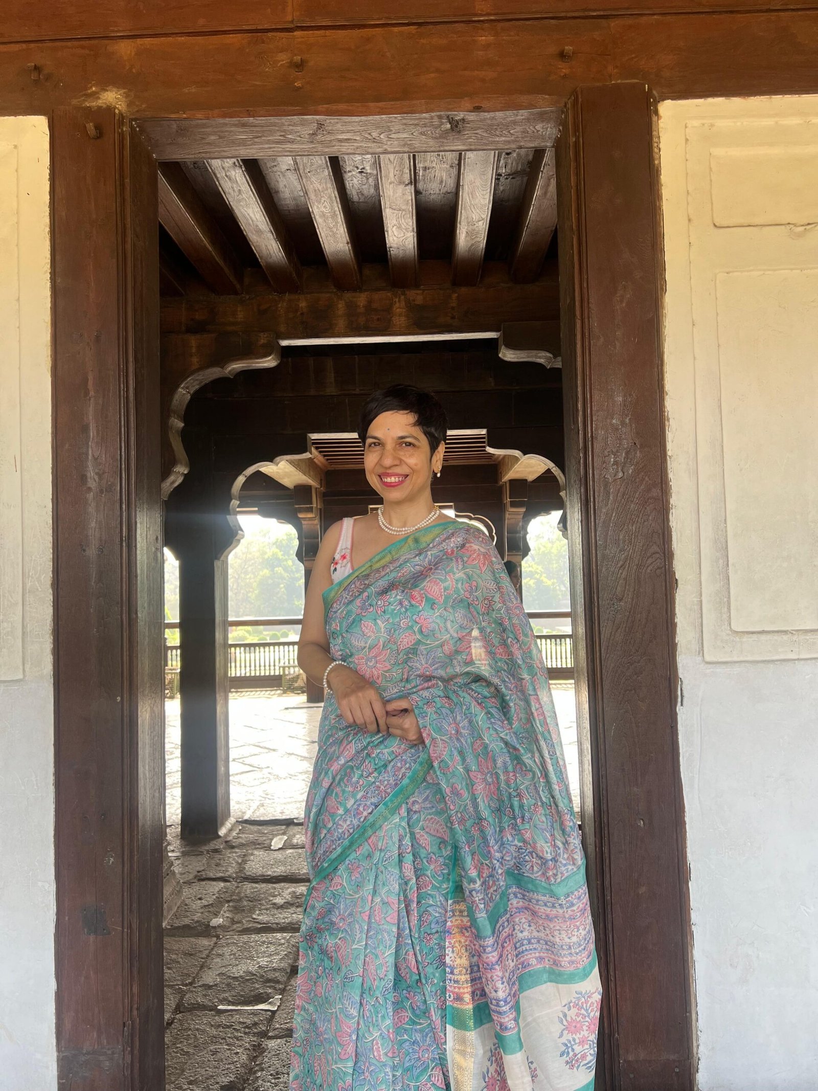 For a more contemporary look, pair Sameera with a structured blouse, pastel accessories, or even a blazer for a modern-day heritage aesthetic.