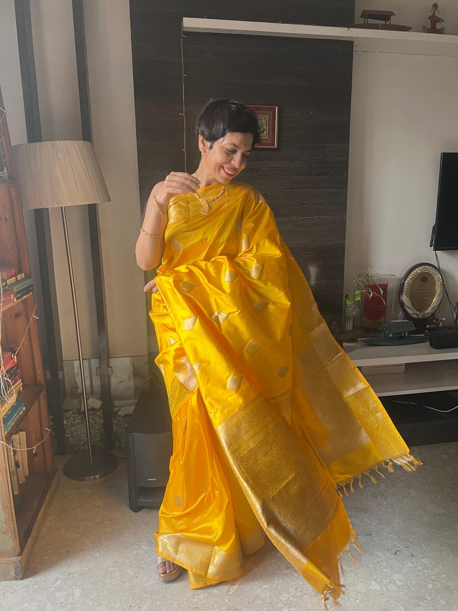 Suryavalli — a drape that carries the essence of sunlight woven into silk.